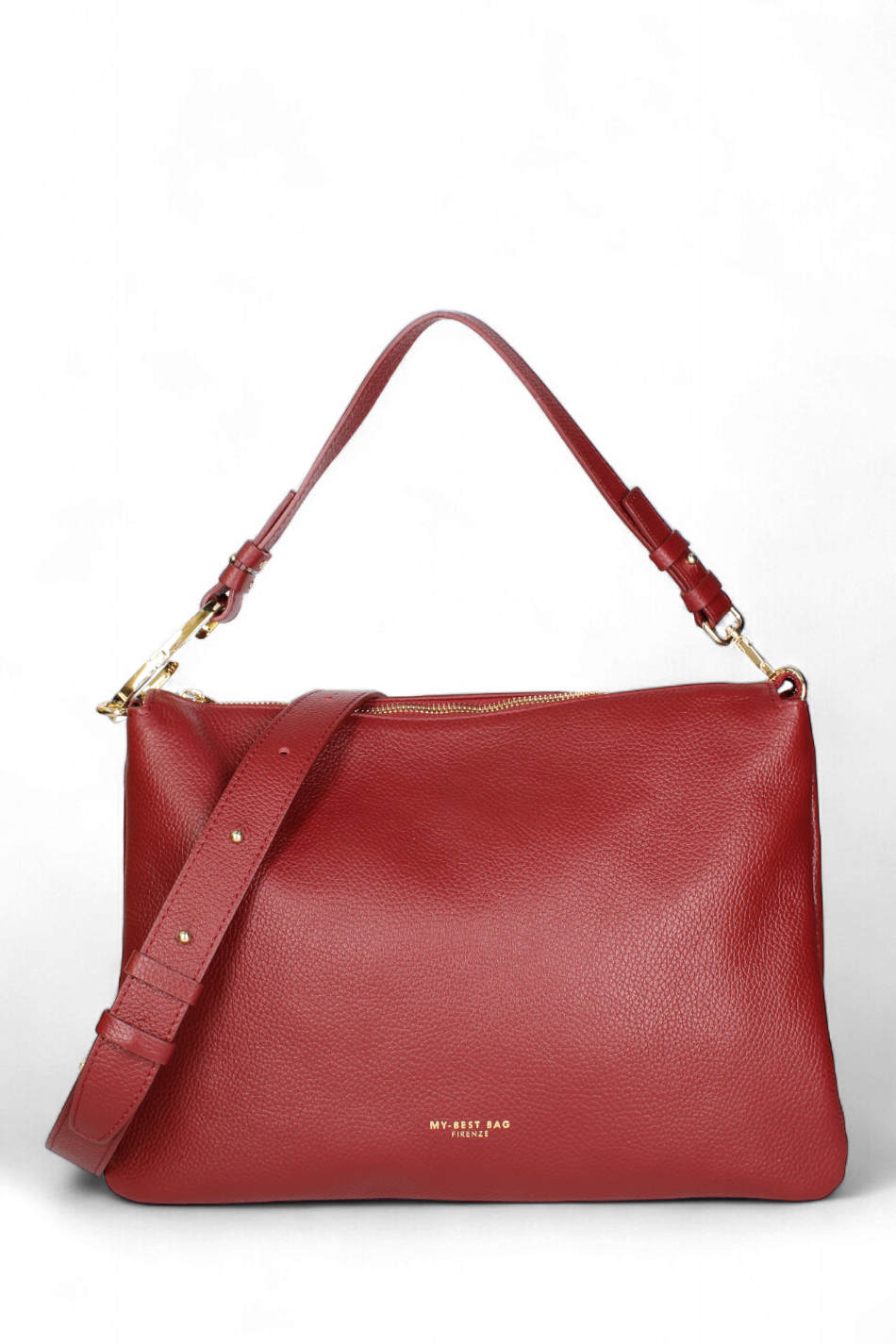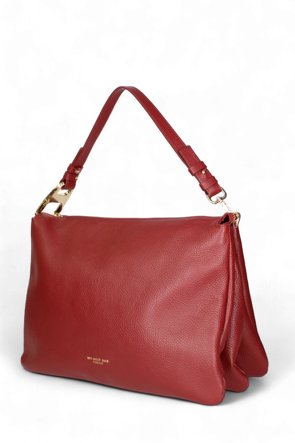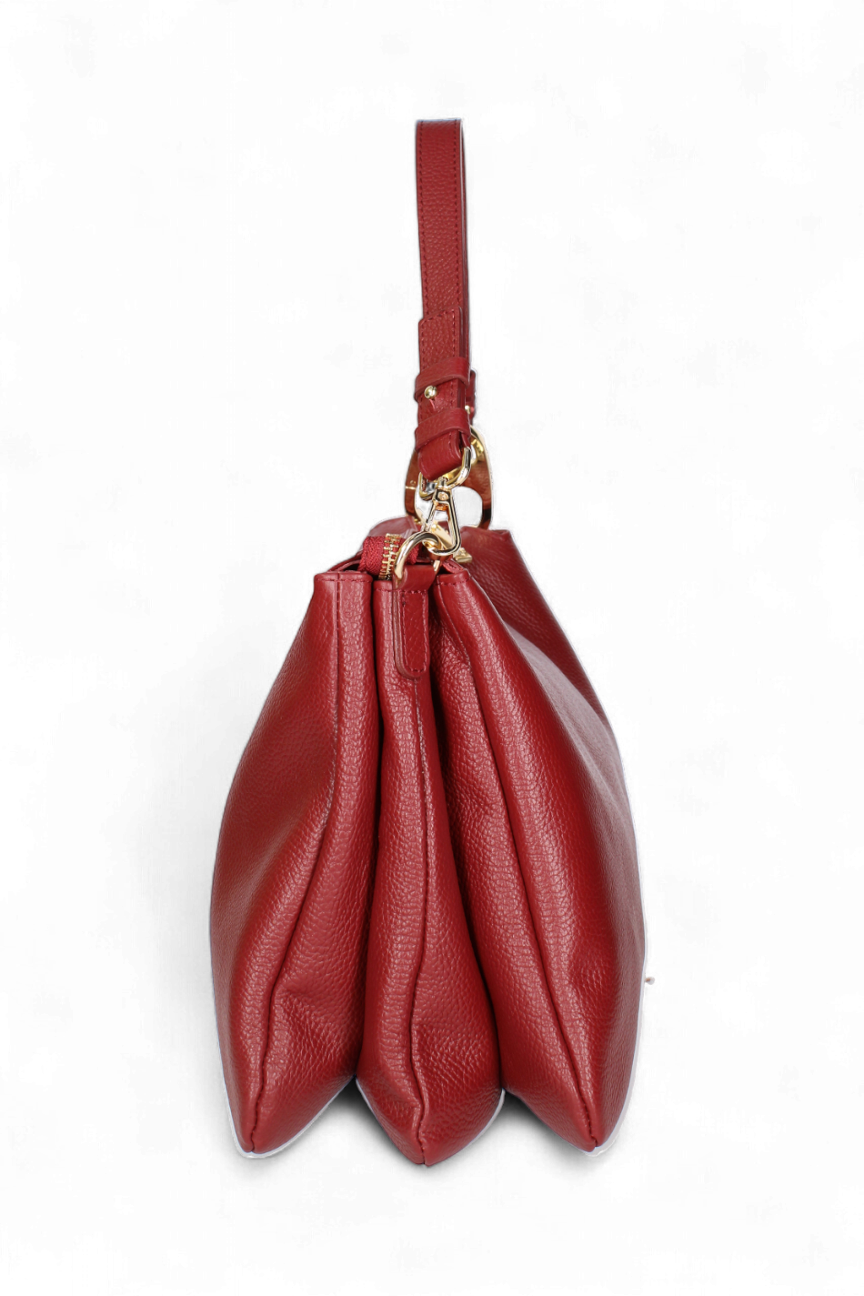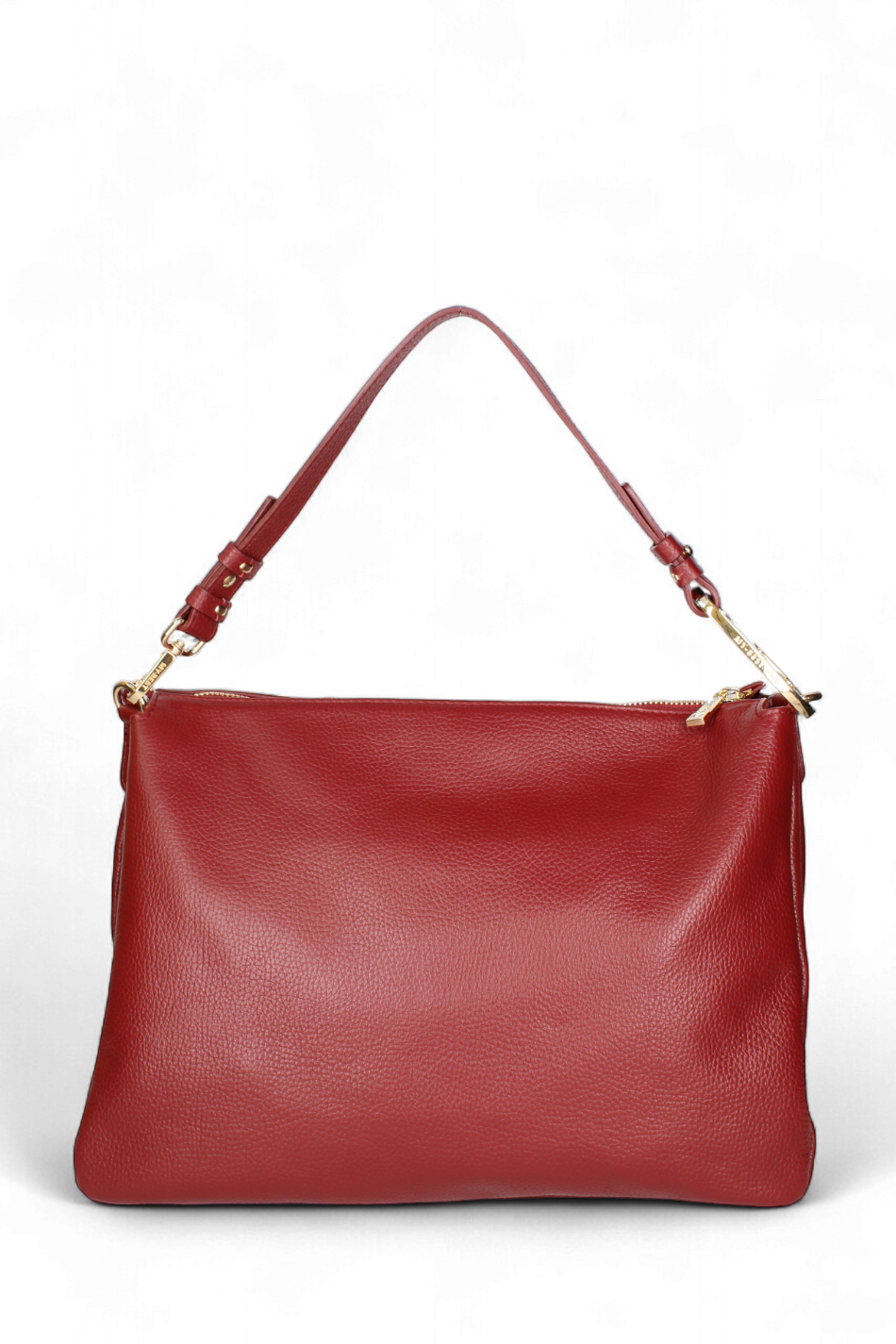 Questa borsa a spalla presenta un design pratico e strutturato, perfetto per chi desidera un accessorio ampio, elegante e funzionale grazie alla sua tripla capienza interna.