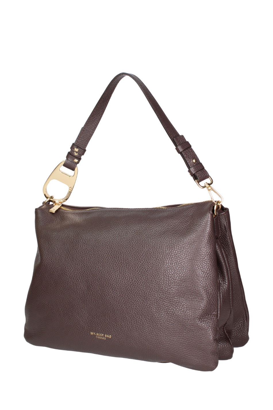 Il logo è impresso frontalmente in lettering dorato, posizionato nella parte inferiore del frontale.