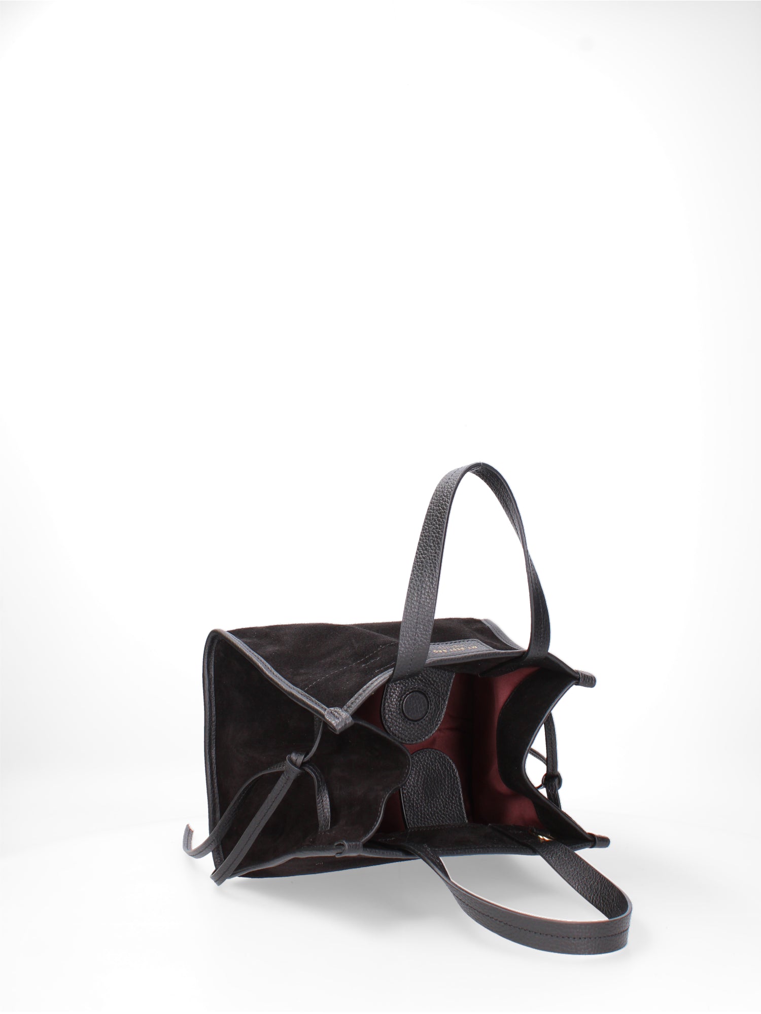 Struttura: La silhouette è compatta ma modellata, con pannelli in suede che mantengono una forma elegante e continuativa. I bordi e i profili in pelle dollaro definiscono la linea e impreziosiscono la struttura.