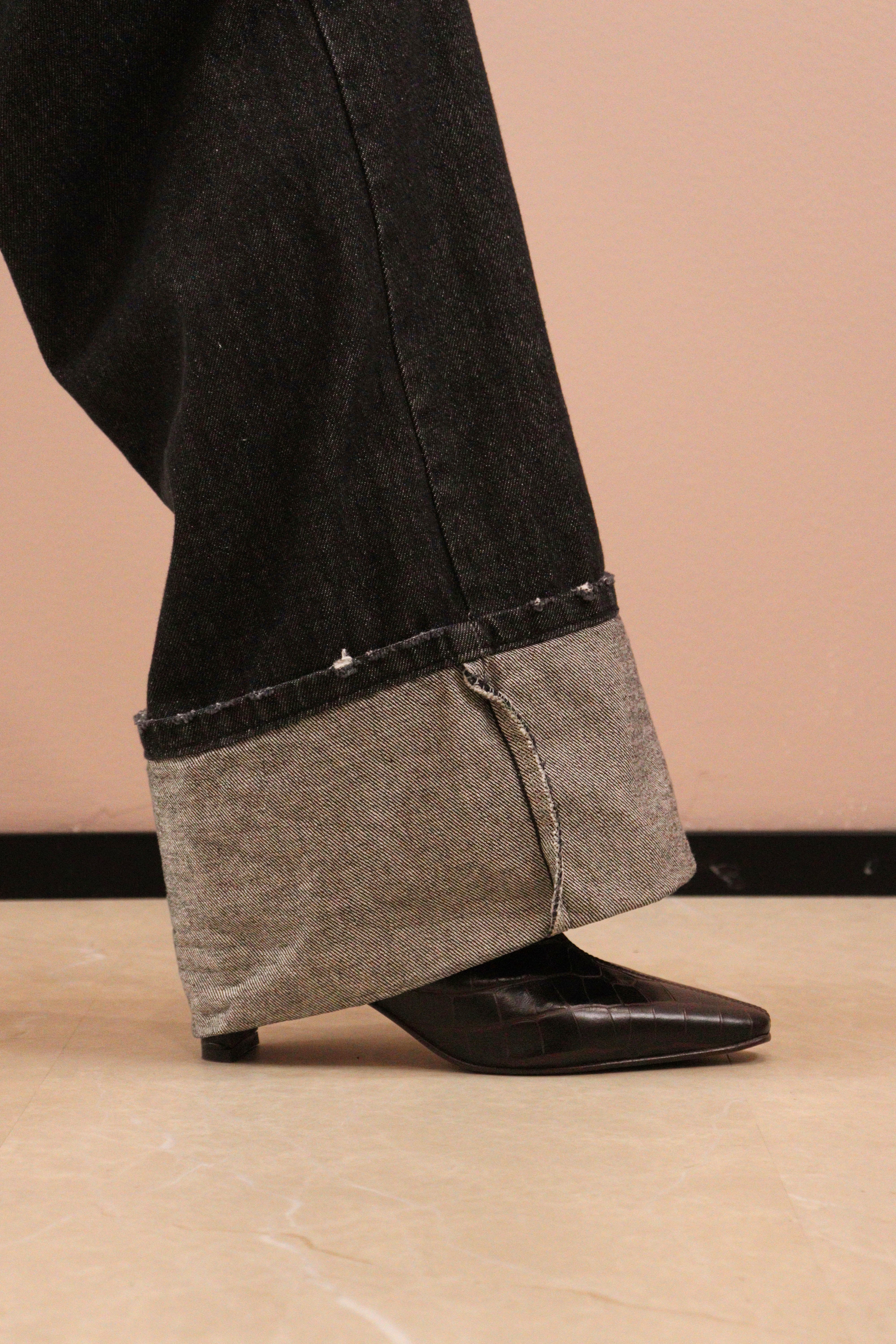 God Save Denim Jeans Nero Slouchy Con Piegone Modello Zefiro-6