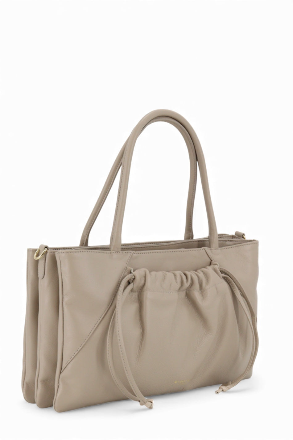 Struttura: Il corpo principale è morbido ma modellato. Il fronte è caratterizzato da una tasca molto estetica arricciata con coulisse, elemento distintivo del modello che valorizza il design e dona movimento alla silhouette allungata.