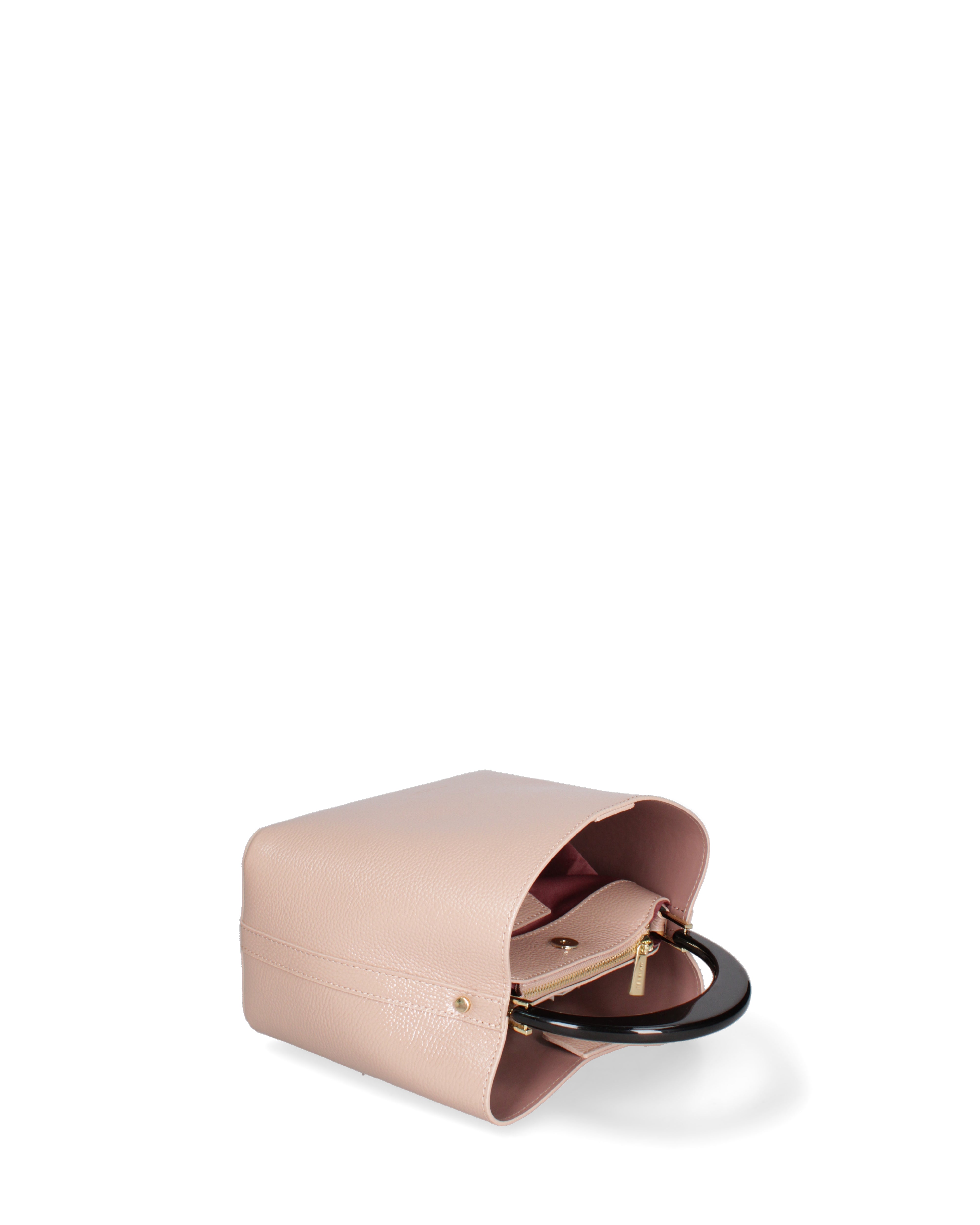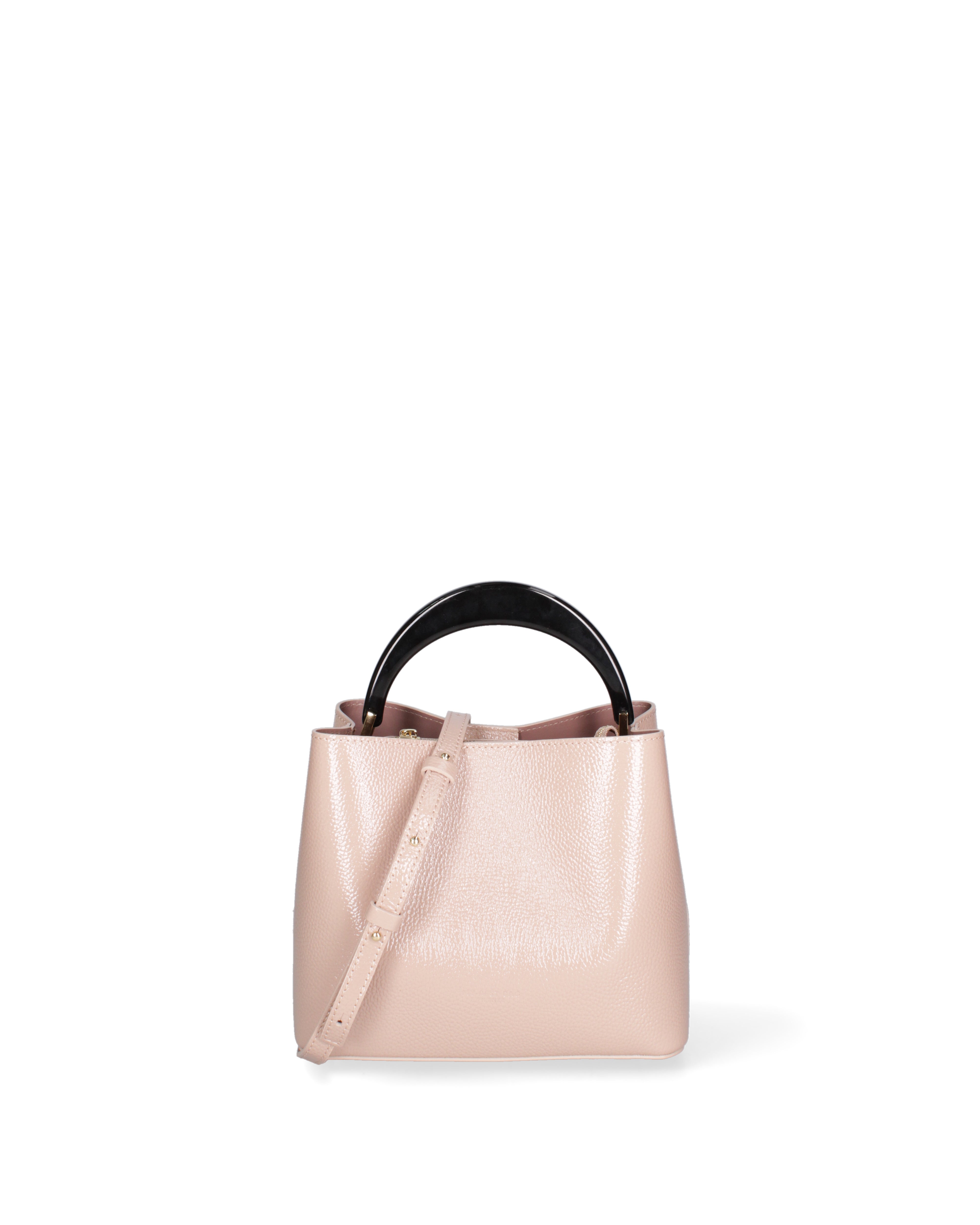 Dotata di manico rigido lucido, pensato per essere portato comodamente a mano. Il manico, dal design pulito e moderno, valorizza l’estetica minimale della borsa e ne rafforza il carattere elegante.