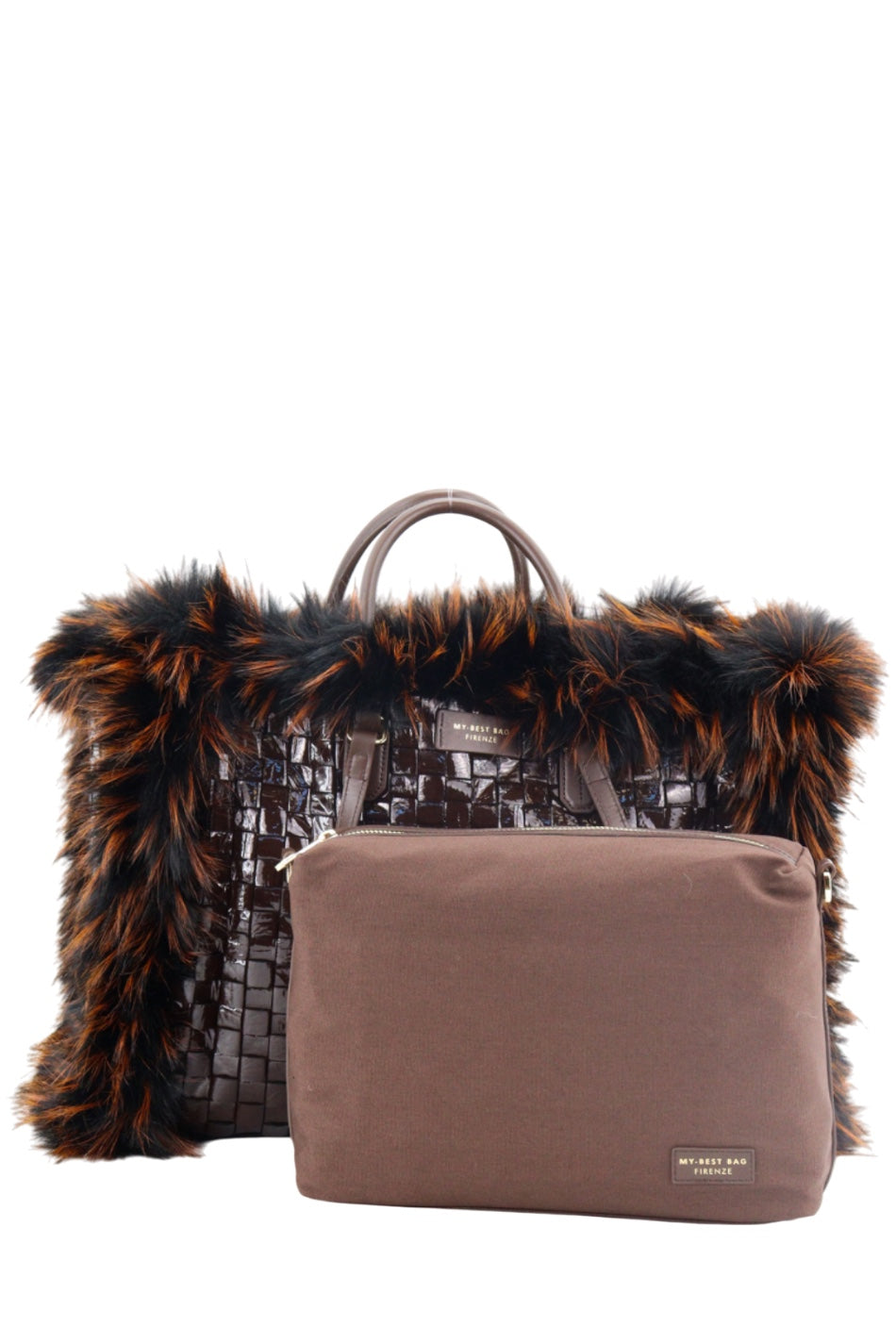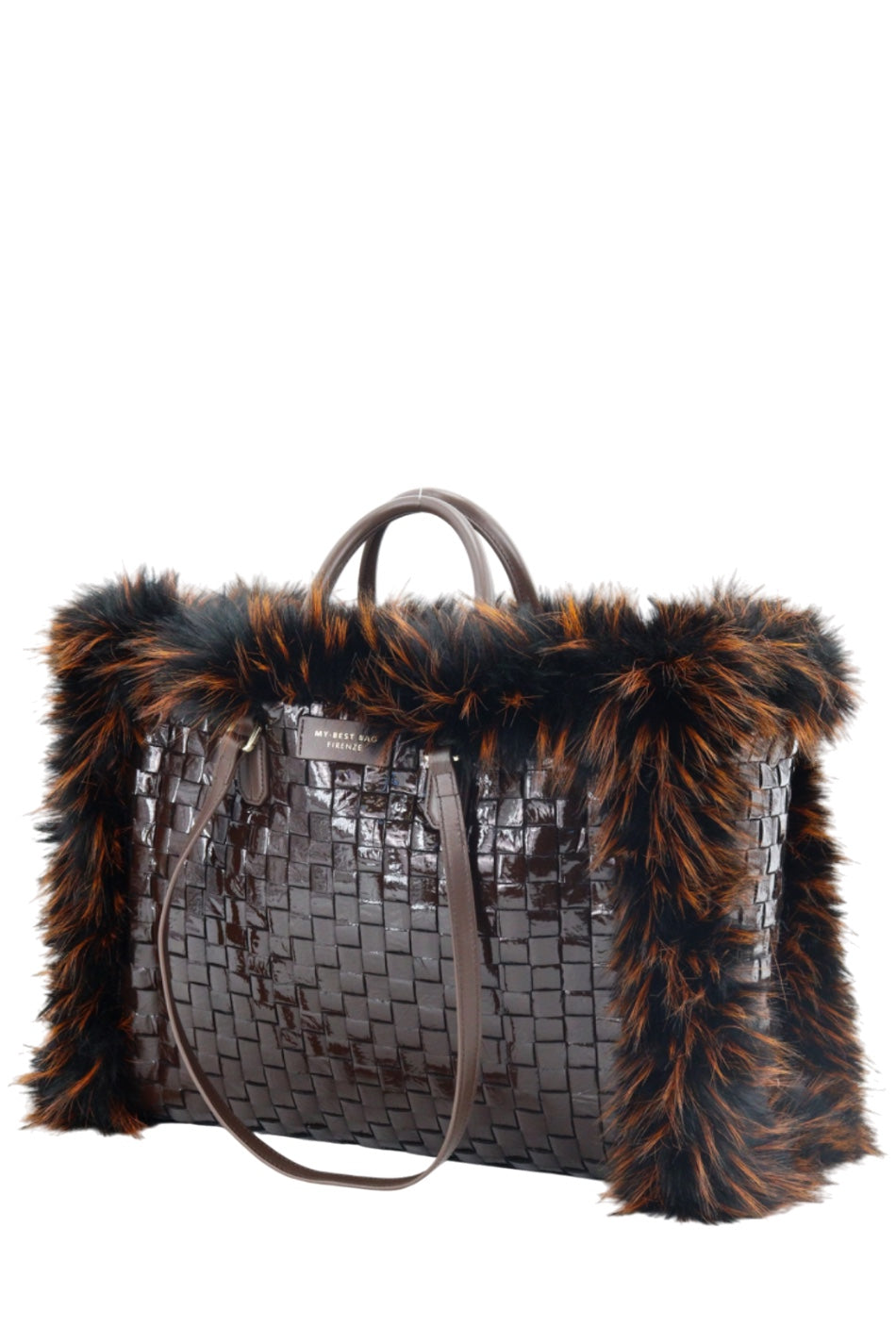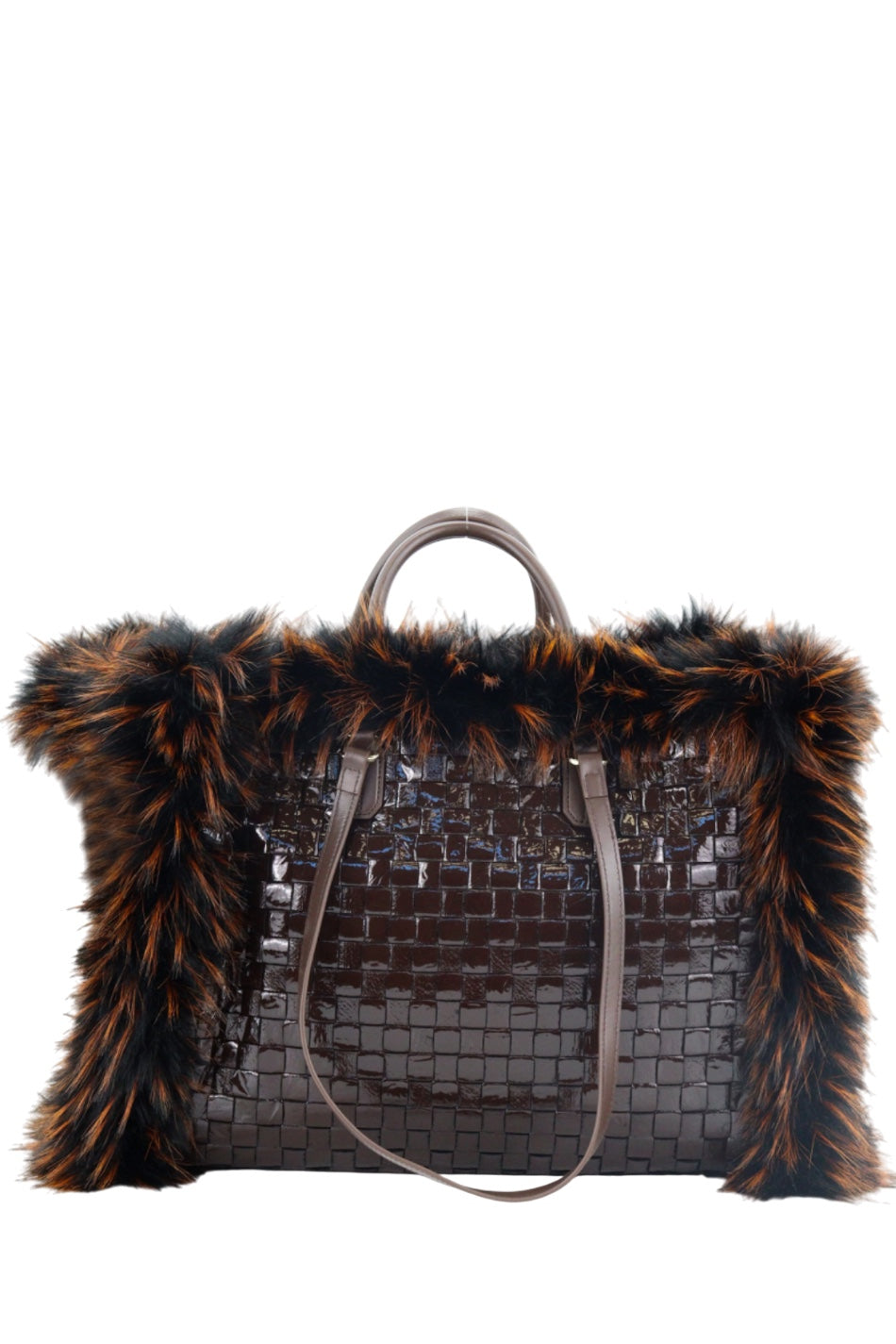 Materiale: Realizzata in pelliccia sintetica Chamonix con dettagli e manici in vera pelle. La lavorazione intrecciata interna conferisce robustezza e un look ricercato.