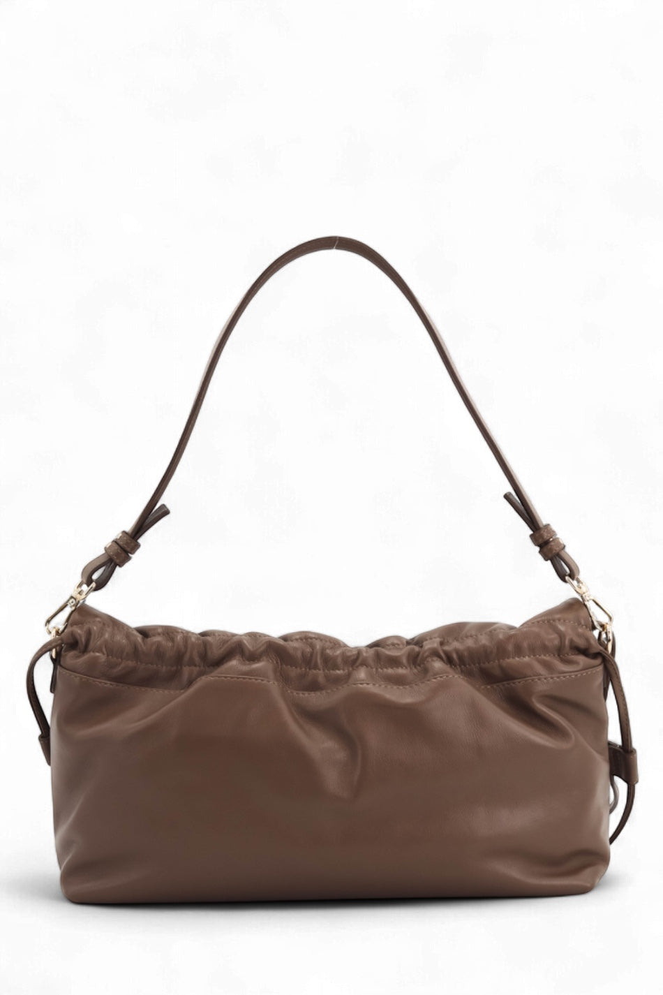Struttura: Il corpo principale è definito, morbido e armonioso, con una forma leggermente strutturata che valorizza la finitura lucida della pelle. Le arricciature frontali donano movimento e una linea raffinata.