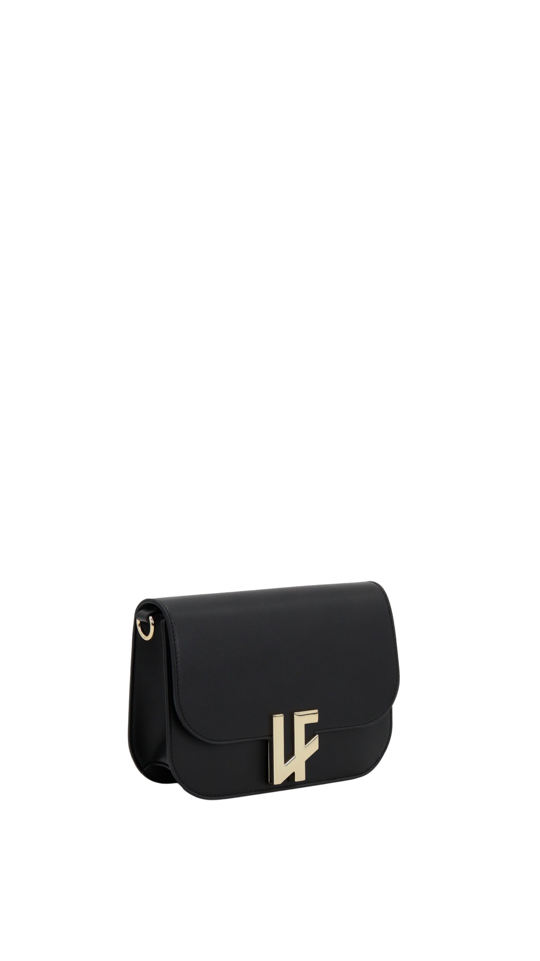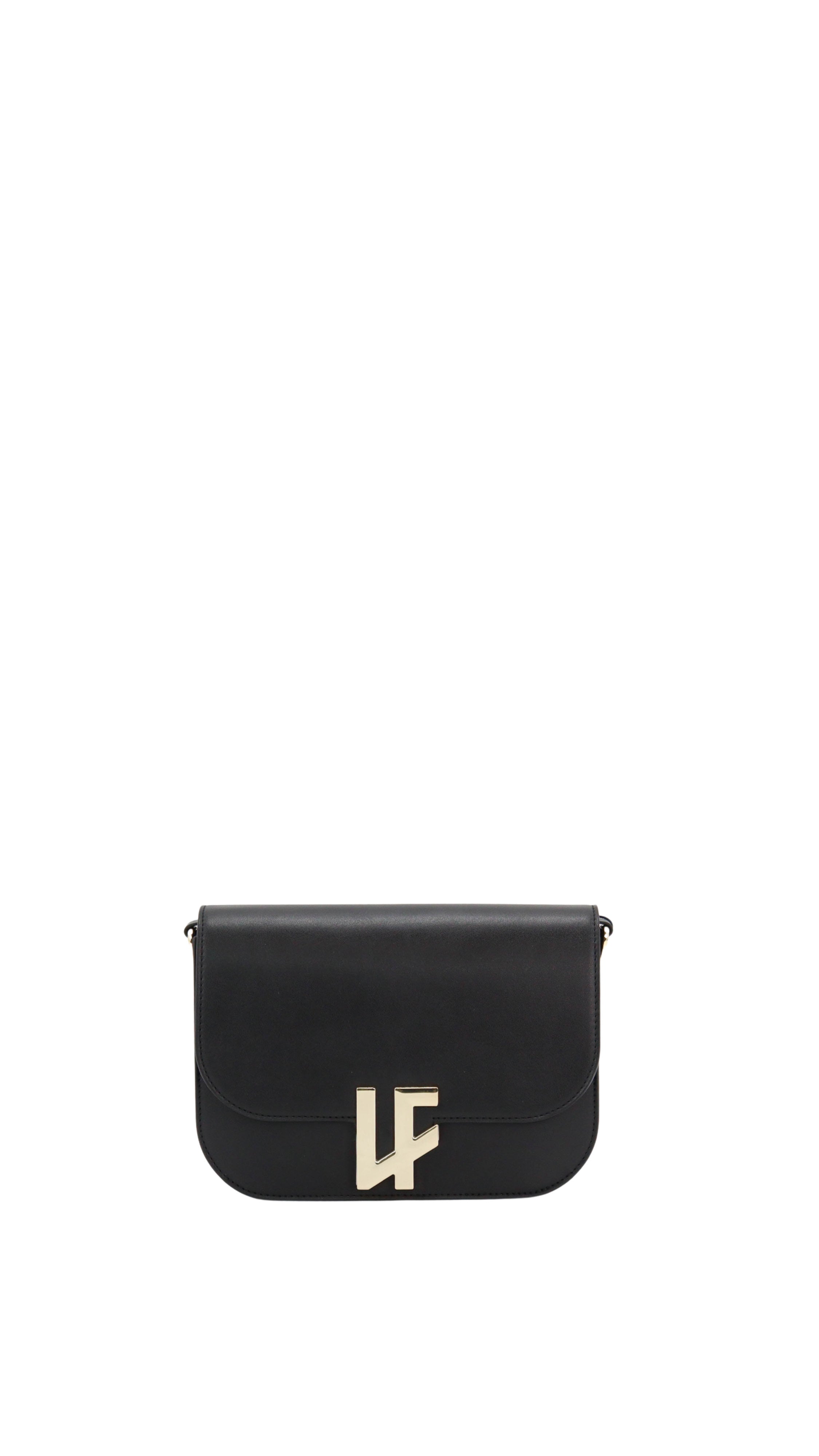 Chiusura frontale con patta e logo metallico “LF”