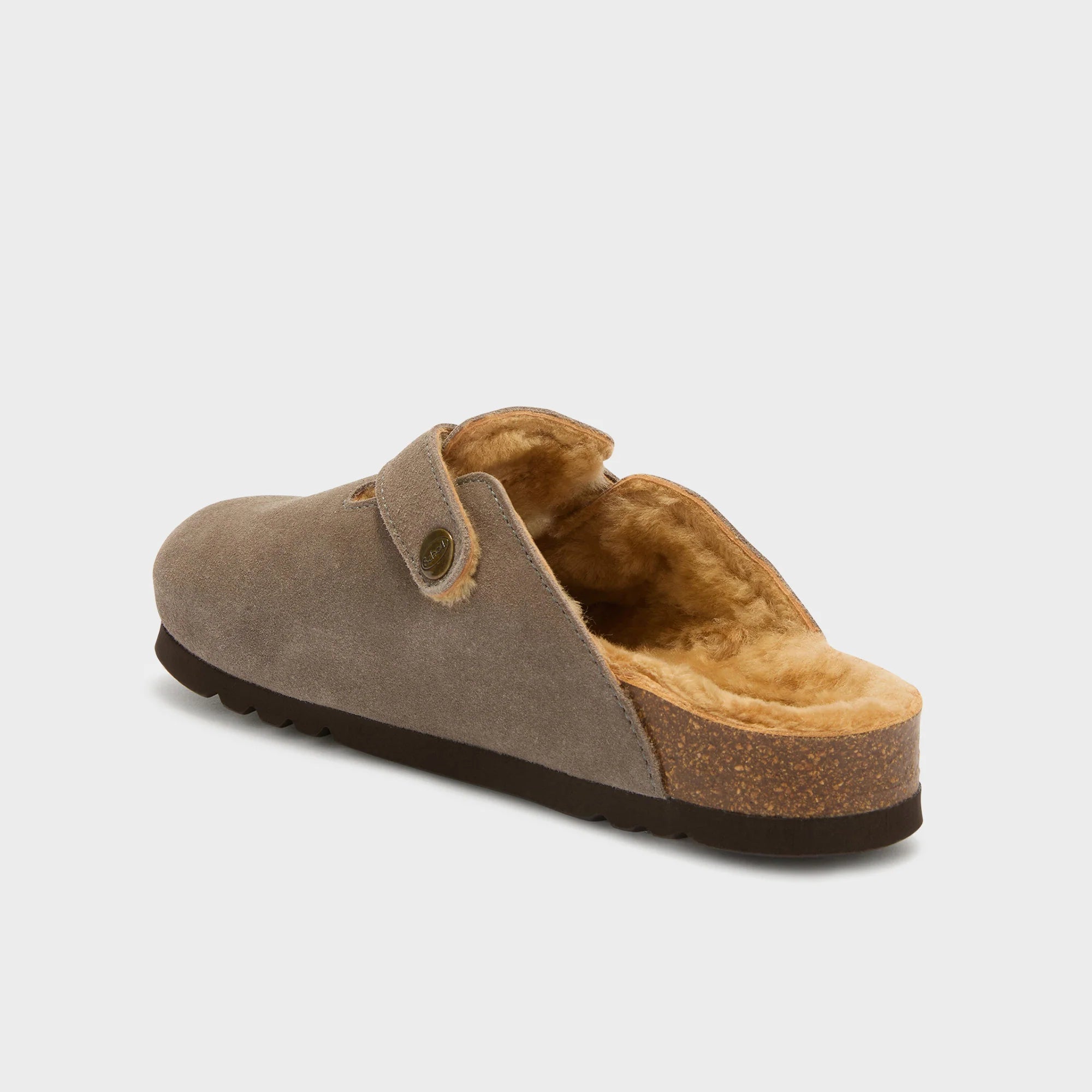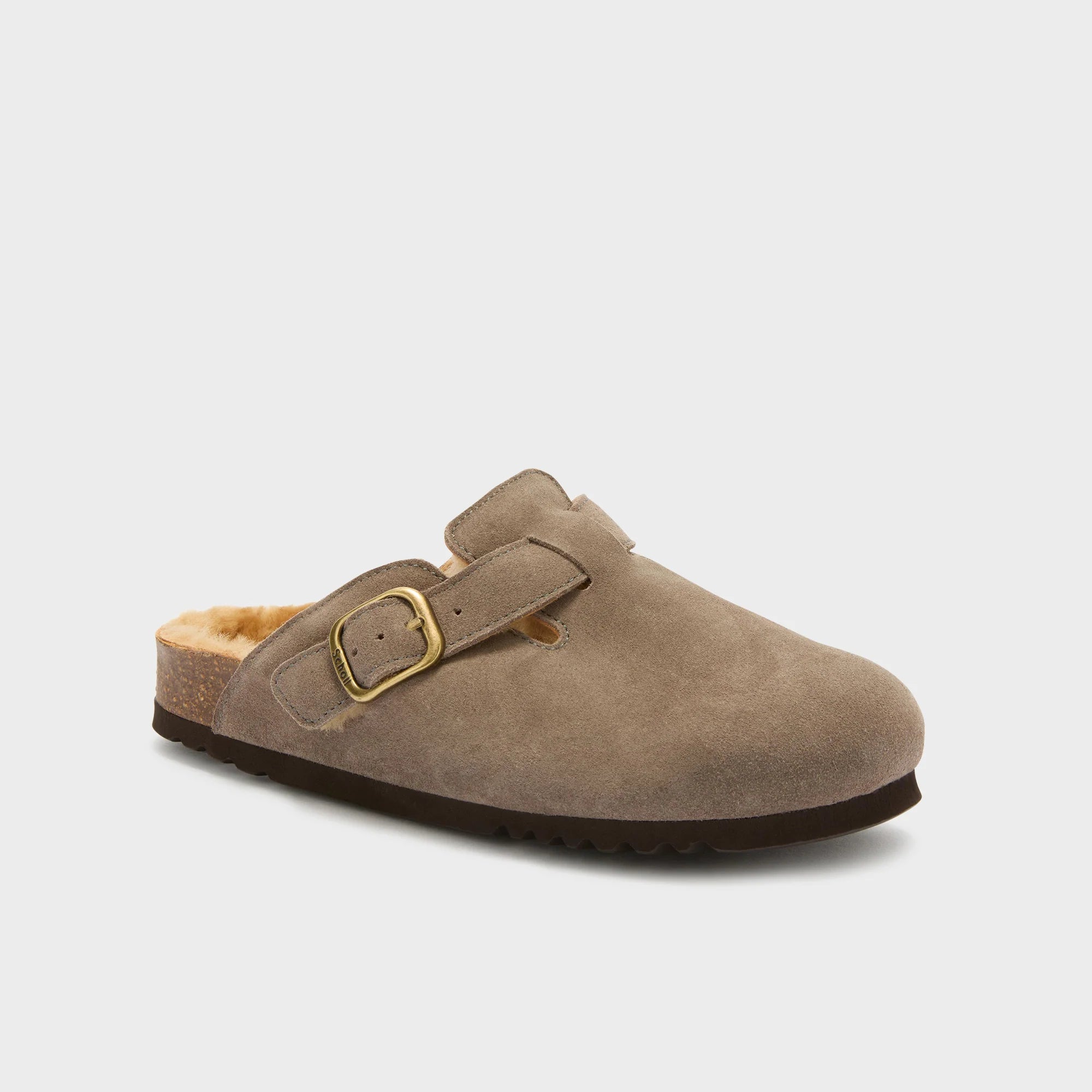 Progettato per il comfort e il fascino senza tempo, questo mulo Scholl presenta una morbida tomaia in pelle scamosciata abbinata a una calda fodera in shearling per una sensazione di peluche. Il cinturino regolabile con una fibbia color oro aggiunge un tocco di fascino vintage garantendo una vestibilità sicura.