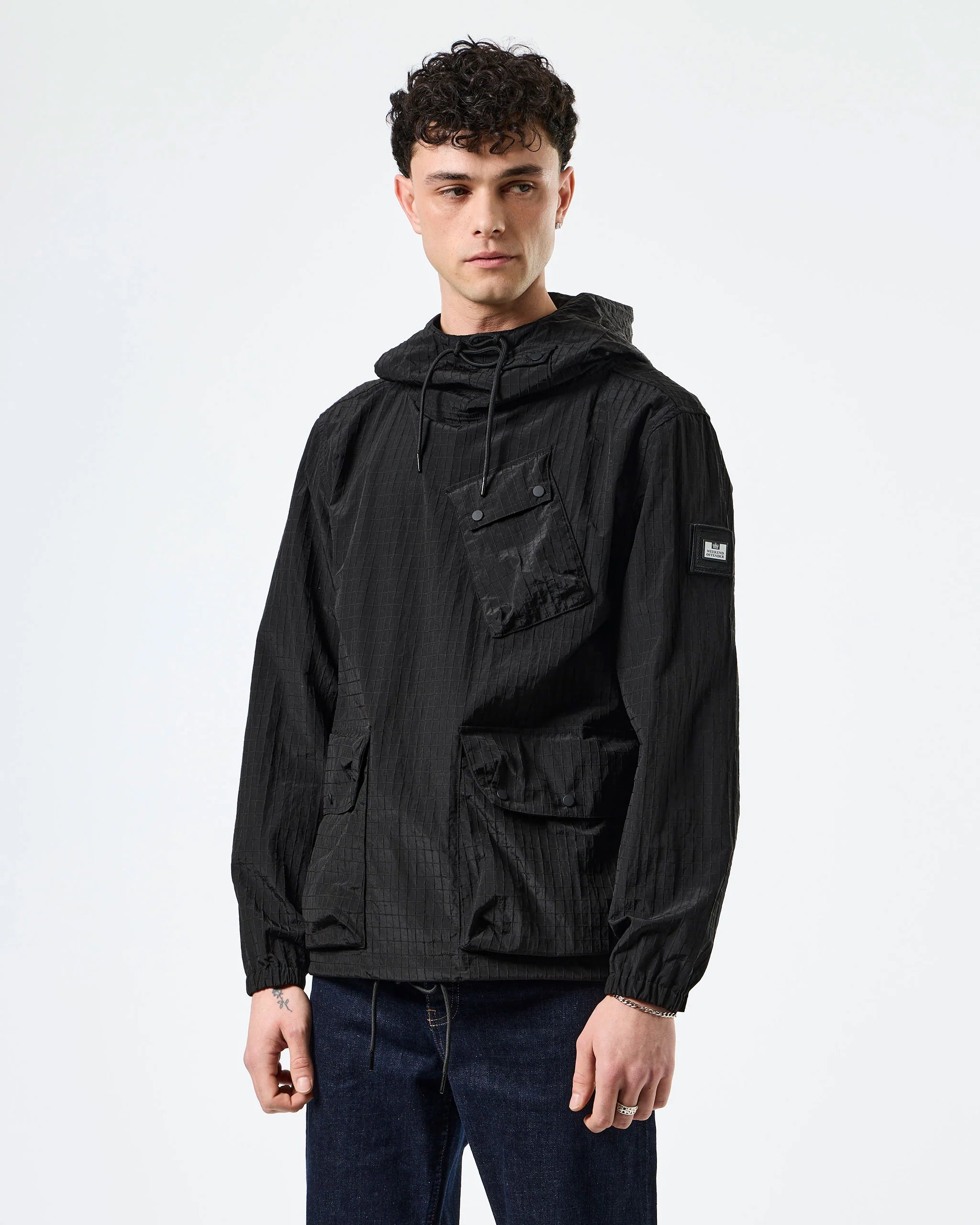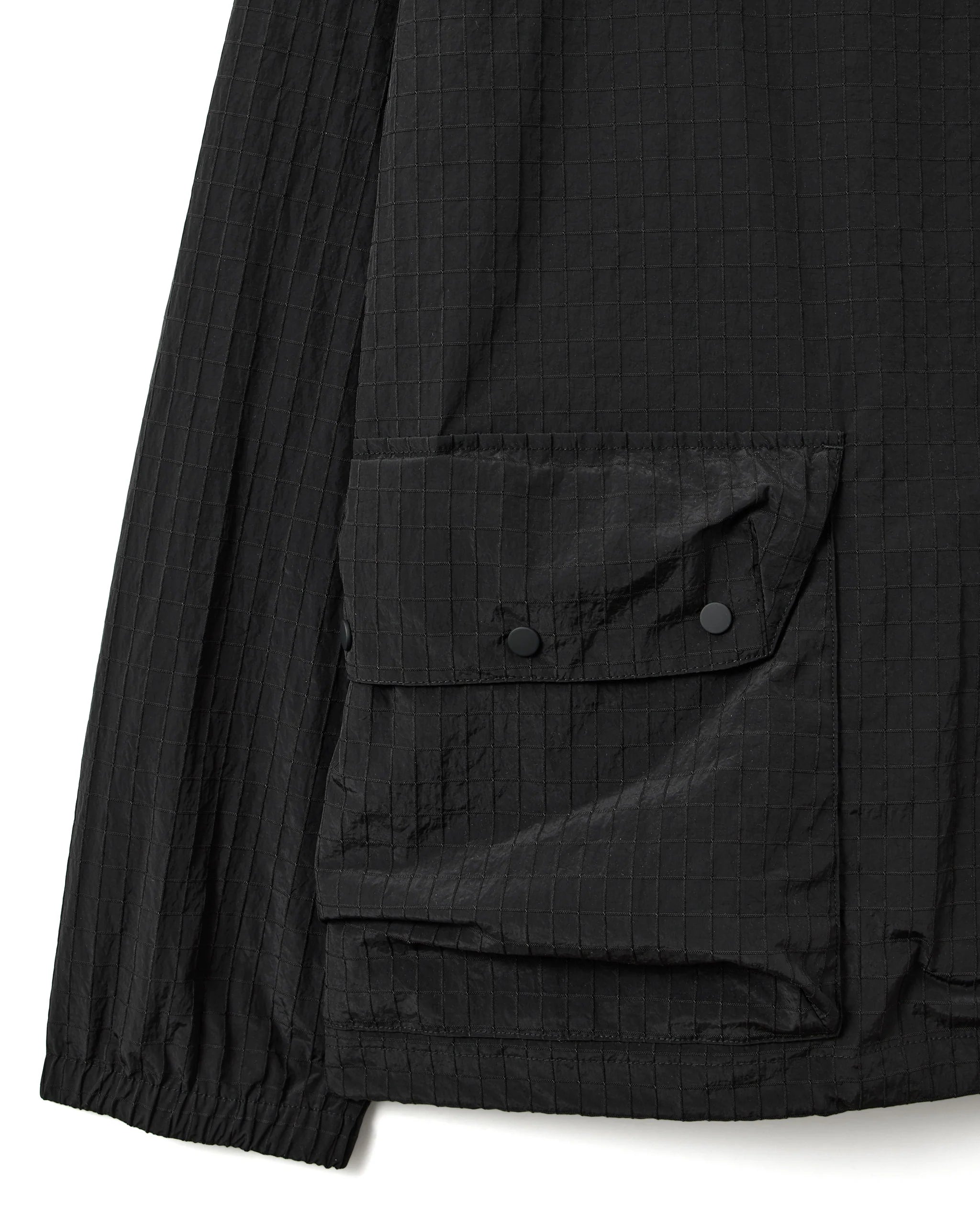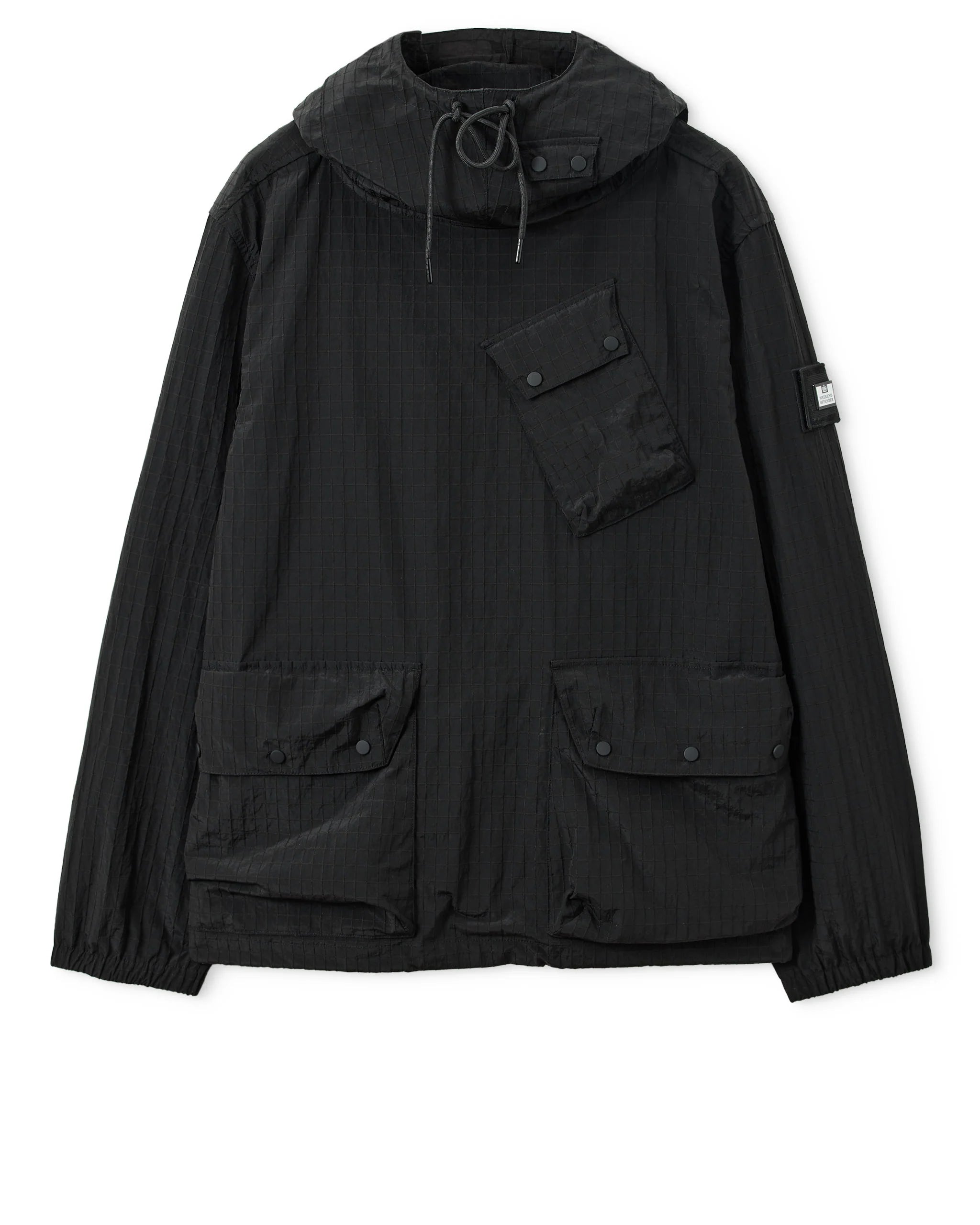 Ripstop over-top realizzato in 100% Nylon grande ripstop con fili di rinforzo intrecciati 3D per un'elevata resistenza alla trazione e una finitura strutturata. Trattato con un ulteriore rivestimento DWR (Durable Water Repellent).