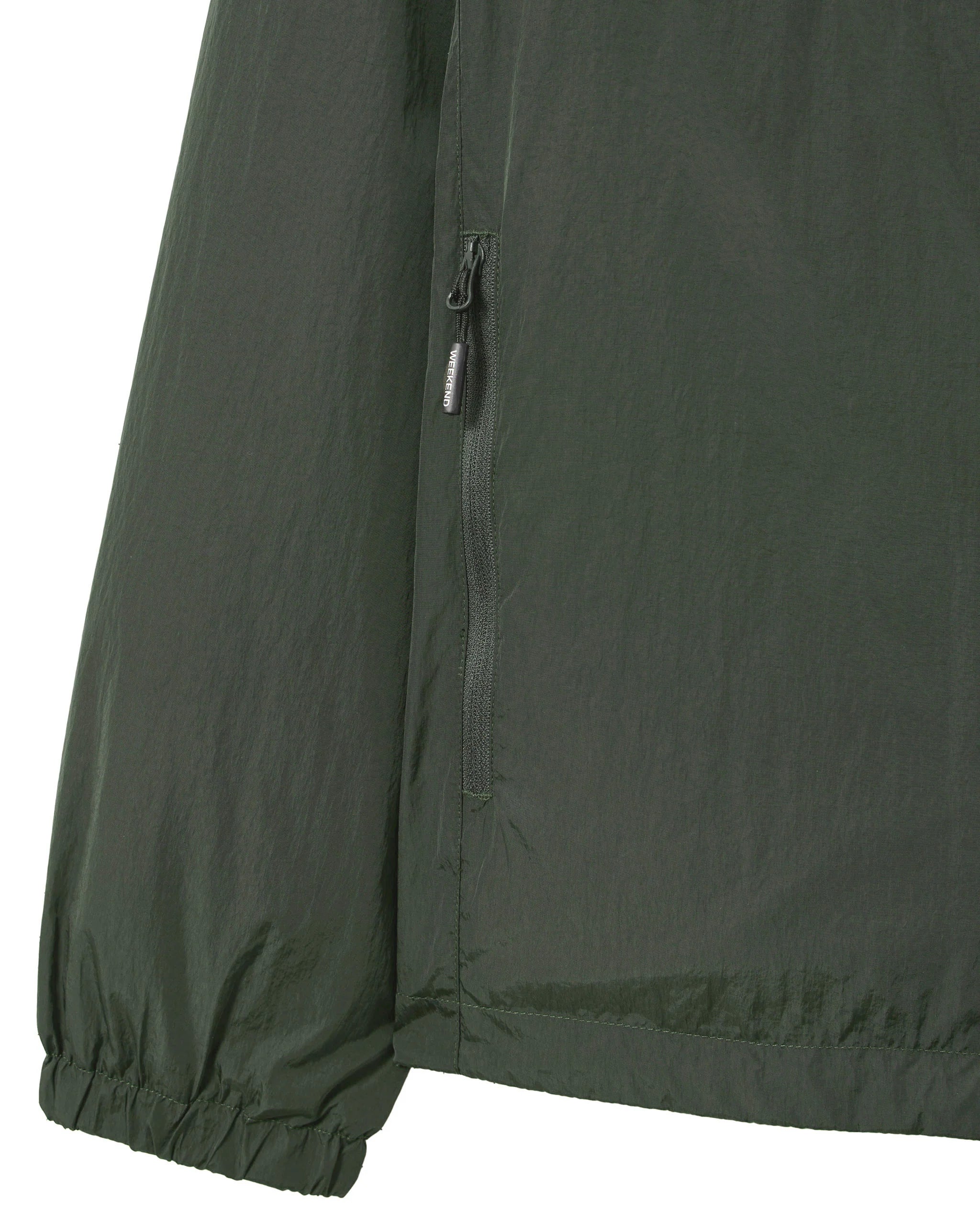 La giacca da tecnico è realizzata in tessuto leggero in nylon intrecciato al 100% in nylon con superficie leggermente riflettente nebbiata. Trattato con un ulteriore rivestimento DWR (Durable Water Repellent).