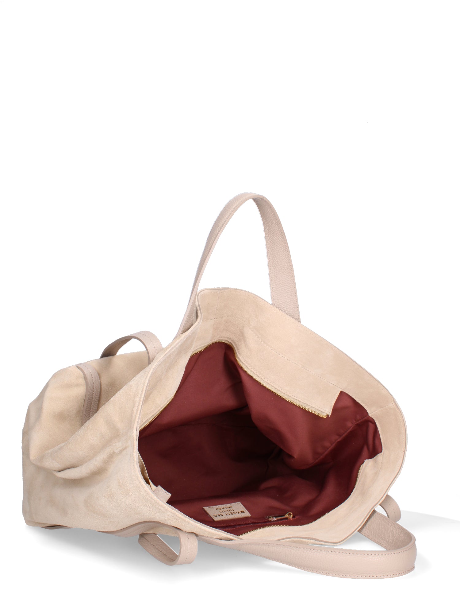 La chiusura superiore è assicurata da una zip lunga, che rende la borsa sicura e funzionale in ogni situazione.
